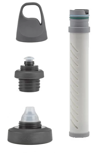 Le Lifestraw Universal permet d’ajouter un système de filtration à votre propre gourde. Ce kit est compatible avec la plupart des bouteilles du marché : Hydroflask, Camelback, Kleen Kanteen, Nalgene… Il comprend :