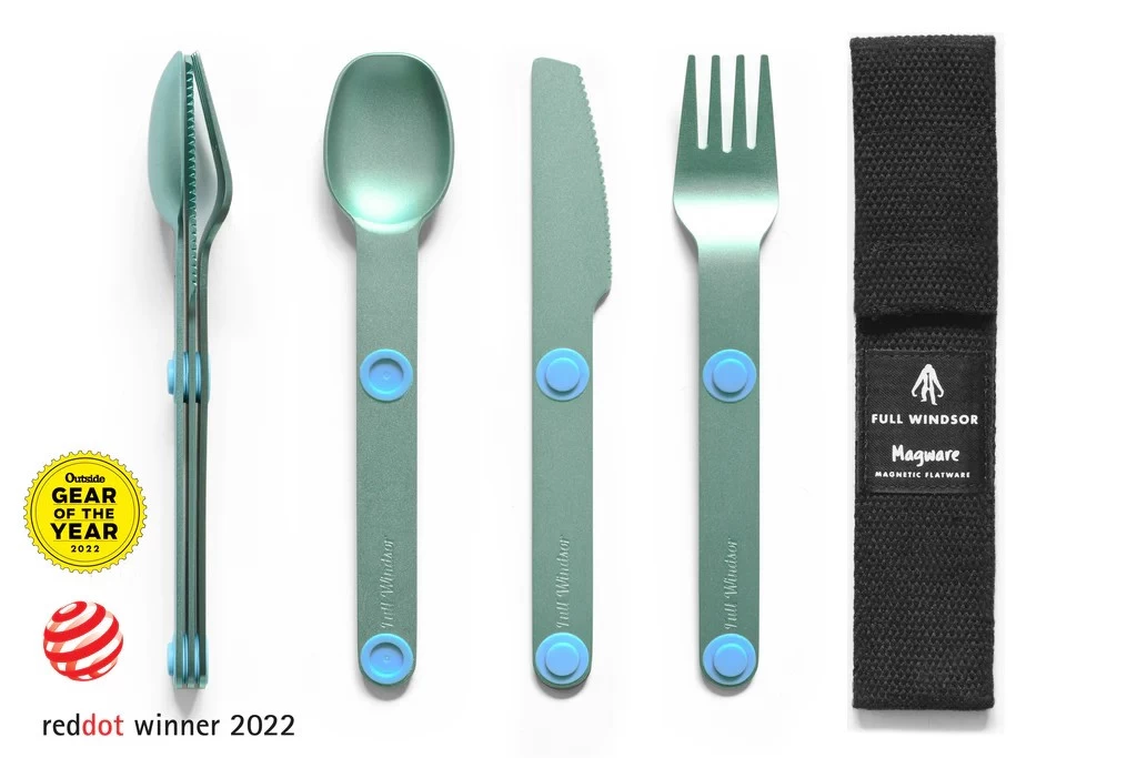 Le Magware de la marque californienne Full Windsor est un ensemble de couverts : couteau, fourchette et cuillère. Littéralement “vaisselle magnétique”, il s’agit d’un jeu de couverts qui sont reliés entre eux par un système magnétique. Ils sont ainsi faciles à regrouper et à ranger.