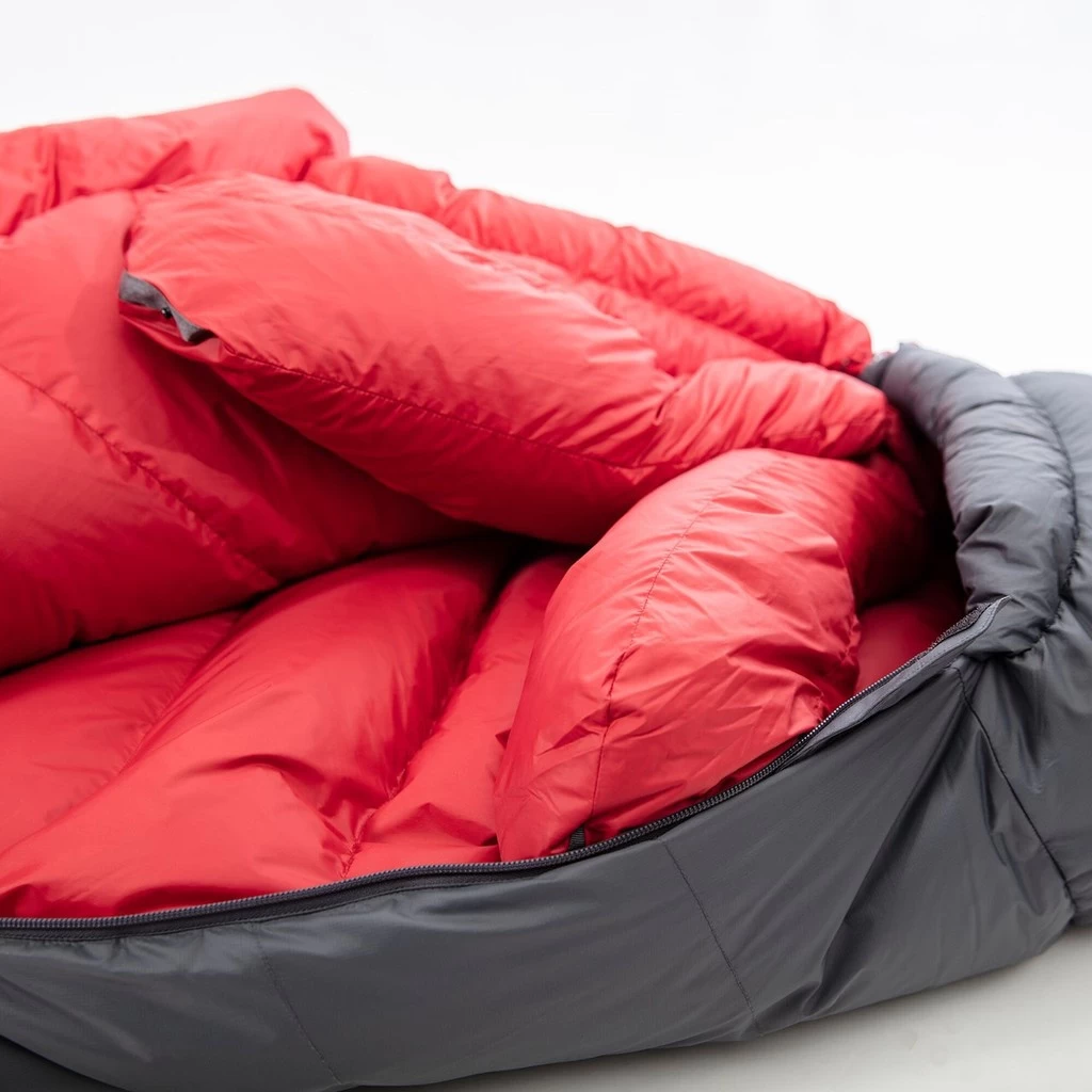 Le tissu en Pertex Quantum de 30 deniers est léger et traité déperlant sur l’extérieur du sac de couchage. Le tissu intérieur en Taffeta est quant à lui agréable et doux au toucher. Le sac de couchage comprend également une poche zippée et il est fourni avec une housse de compression à sangles.