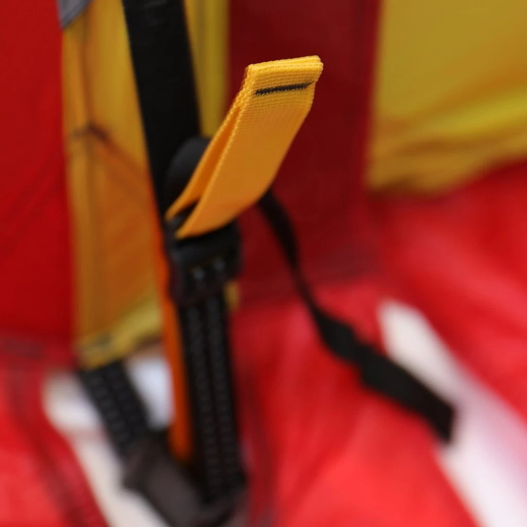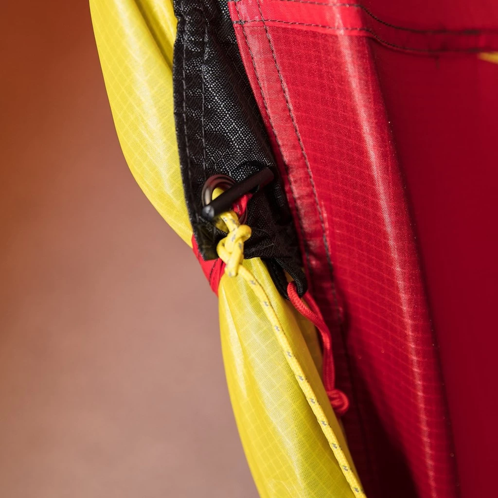 Le montage est simple, les 4 arceaux s’insèrent dans des fourreaux du double-toit, et la chambre vient se fixer ensuite. Elle peut également rester fixer au double-toit, pour un montage plus rapide.