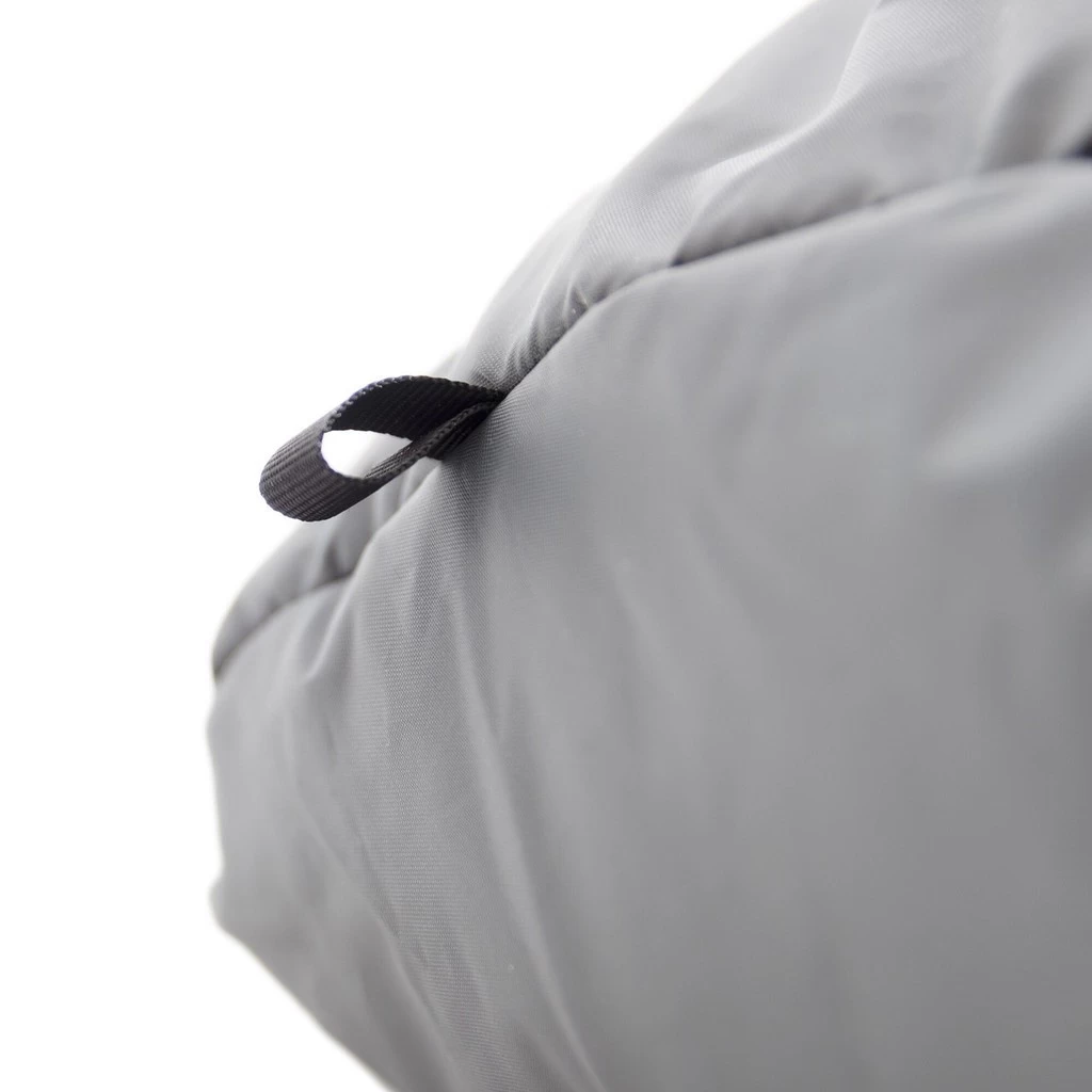 Derrière la tête, une doublure permet d’insérer un oreiller ou un vêtement, pour qu’il reste bien en place toute la nuit. Le sac de couchage compte également une poche interne.
