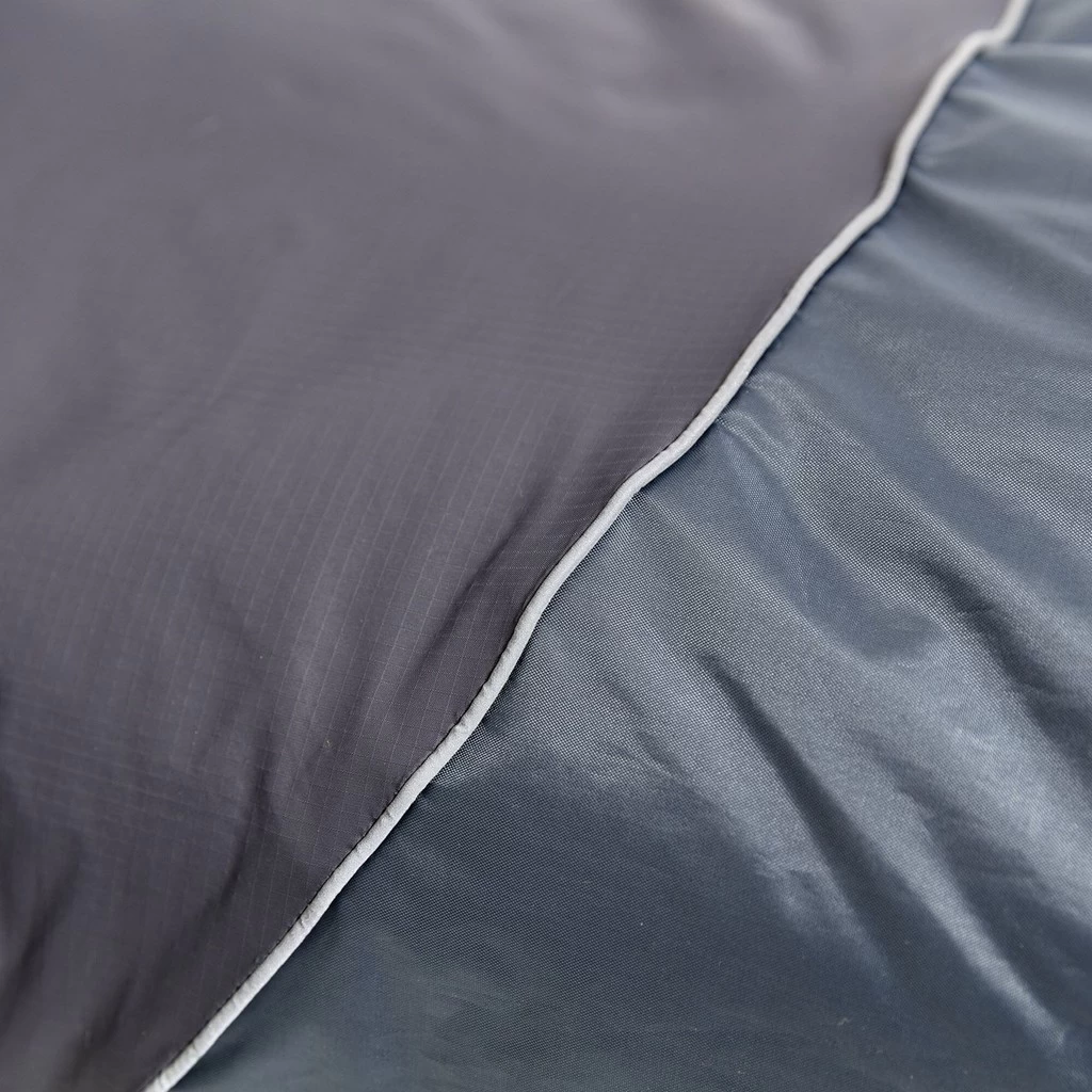 Ce sac de couchage dispose de tissu résistant en nylon 40 derniers et même 75 deniers au niveau des pieds. Cette extrémité est également imperméable, 3000 millimètres, afin ne pas se retrouver les pieds mouillés avec la condensation de la tente ou les nuits à la belle étoile. Sur le dessous, le tissu est antidérapant, pour ne plus glisser de son matelas.