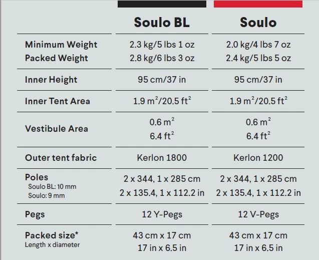 La Soulo BL d’Hilleberg est la version Black Label de la Soulo (Red Label). Cette tente 4 saisons renforcée est prévue pour affronter les conditions météorologiques les plus extrêmes. Cette version dispose d’arceaux de 10 millimètres de diamètre et d’un tissu Kerlon 1800 avec une résistance à la déchirure de 18 kg et une imperméabilité d’une colonne d’eau 5000 millimètres.