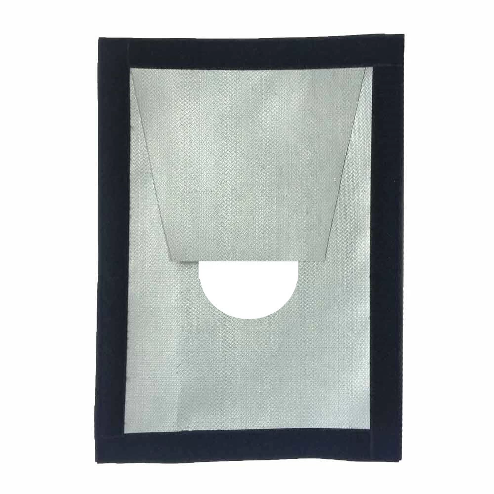 La trappe est réalisée en fibre de verre enduit de silicone et elle dispose de bande velcro sur son pourtour, sur les deux faces. Elle est prédécoupée en son milieu, d’un ovale de11,5 x 7 cm. Il est possible d’agrandir l’ouverture avec une simple paire de ciseaux.