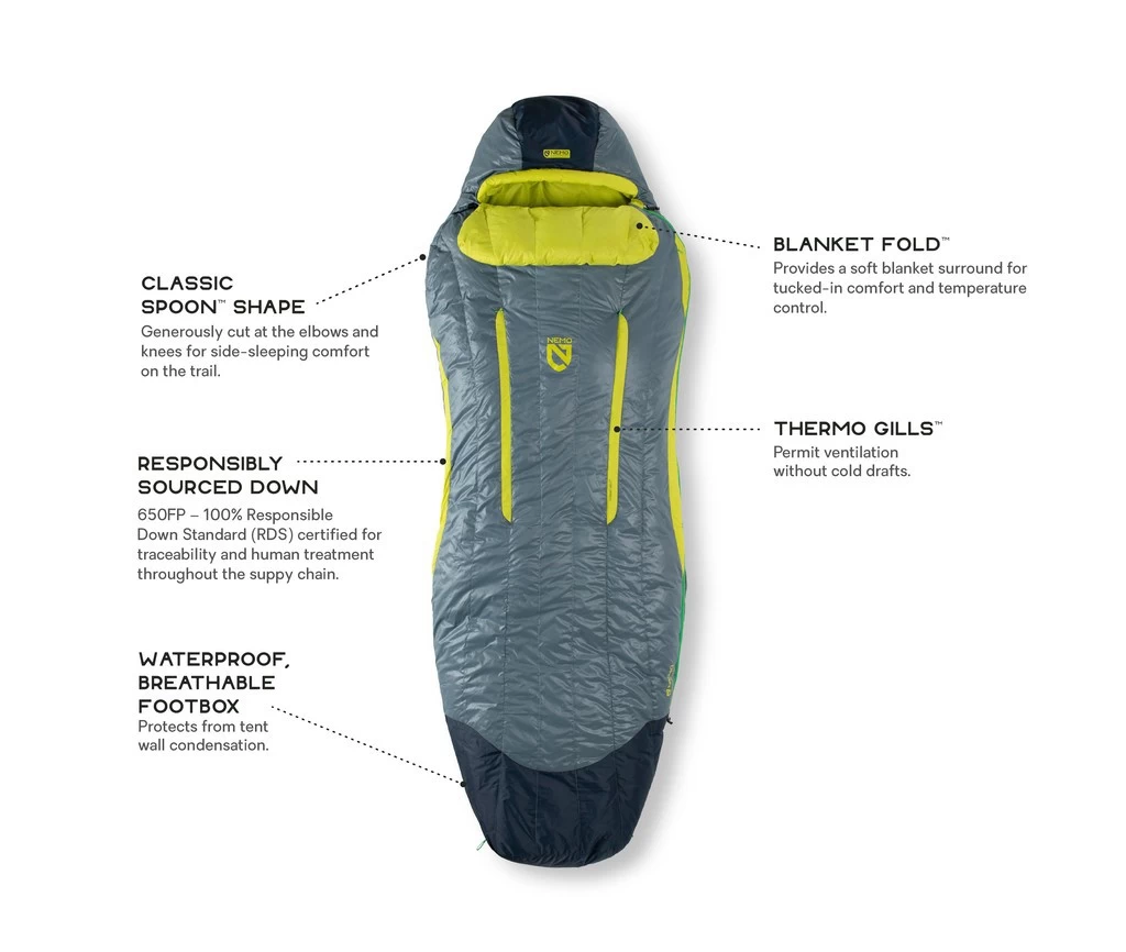 Le Disco Men’s 30 de Nemo est un sac de couchage 3 saisons, grand confort et léger. Il a la particularité d’être très confortable ! Si vous avez besoin de bouger et si vous vous sentez à l’étroit dans les traditionnels sacs de couchage de forme momie, le Disco 30 est fait pour vous !