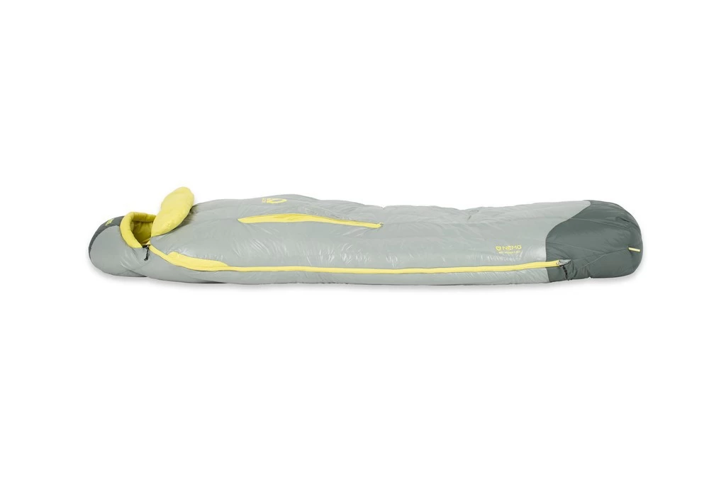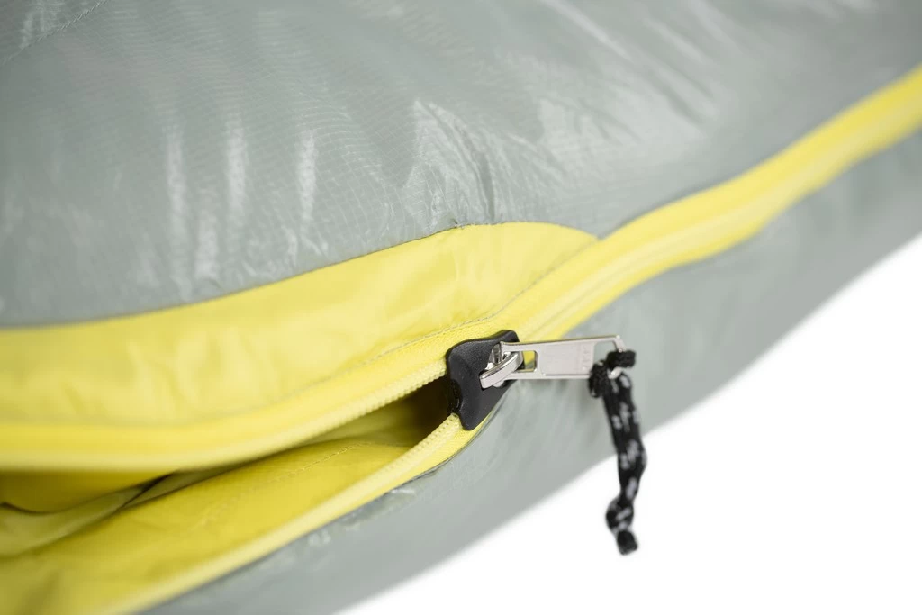 Sac de couchage, garni en duvet de canard 650 cuin, modèle femme, forme cuillère. Température de confort -1°C.