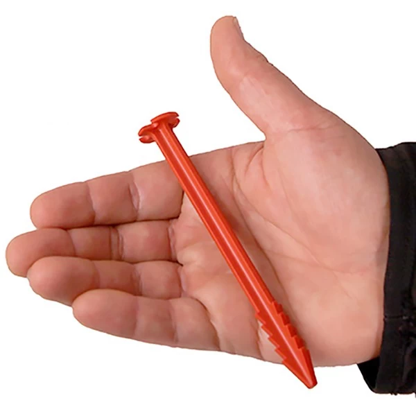 Le RT120 ( 12 cm) de SwissPiranha est un piquet en plastique extrêmement résistant. Ce point d’ancrage est facile à insérer dans le sol et s’avère très sûr en terme d’amarrage. En effet, la sardine SwissPiranha fonctionne comme une cheville : elle glisse facilement dans le sol, mais ses arrêtes situées à la base réduisent le risque d’arrachement.