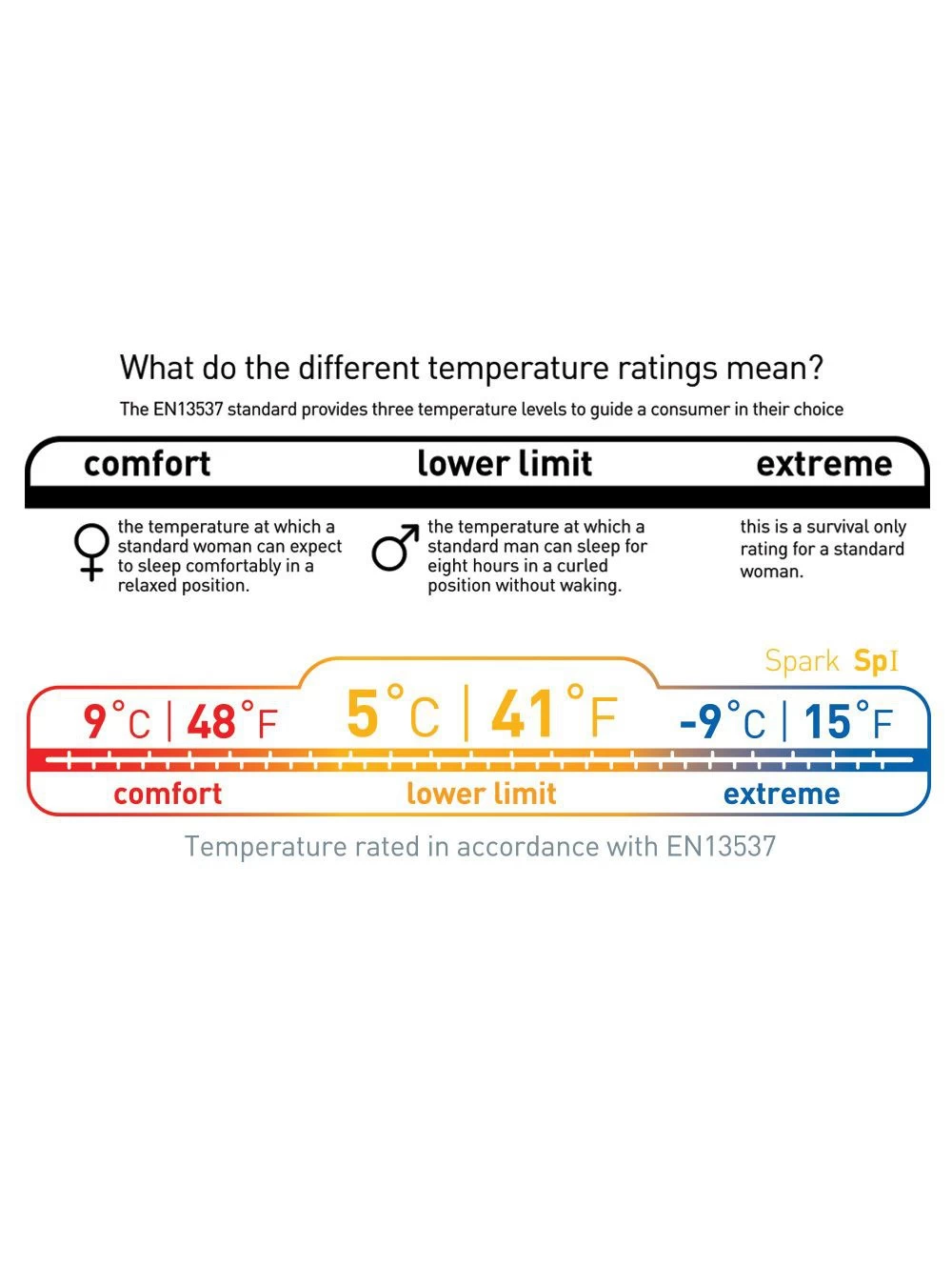 Le sac de couchage Sea to Summit Spark SP I est un duvet offrant de belles performances de légèreté et de compacité. Son garnissage de qualité en duvet d’oie de 180 g (modèle Regular) procure un beau gonflant. Poids total : 340g. La température confort annoncée suivant la norme EN13537 est de 9°C (température limite de confort : 5°C)