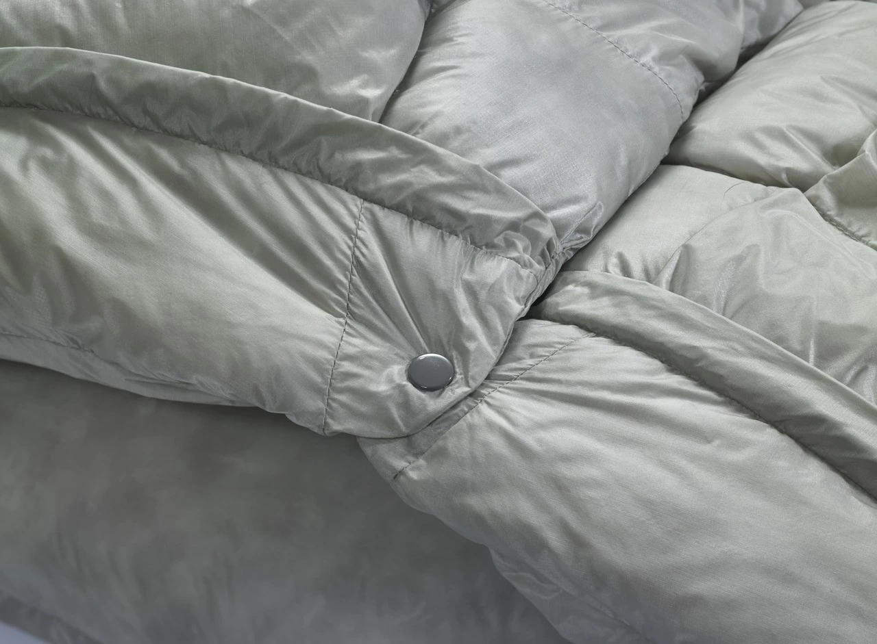 Le Vesper 20F/-6C Quilt de Thermarest est un système de couchage conçu pour les adeptes du minimalisme et pour les randonneurs à la recherche d’un sac offrant un confort suffisant tout en limitant le poids dans le sac à dos. Ce sac de couchage est particulier, car il optimise l’isolation sur les côtés et sur le devant du dormeur. Sans fioritures, Il est dépourvu de capuche, de colerette et n’a pas de garnissage dans le dos, car par principe, c’est votre matelas de sol qui servira d’isolant.